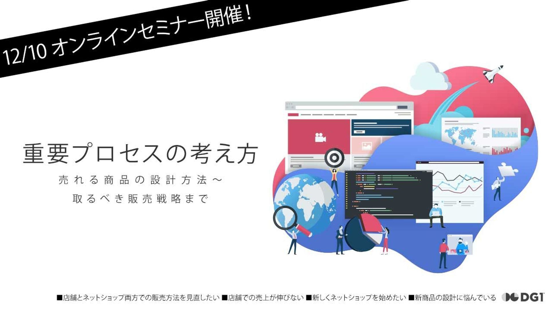 コンサル業をメインに取り組まれているTech Produceの重枝様をお招きし、商品開発の設計やプロセスや、その思考方法についてお話しいただきます。さらに、DG1からは実際に消費者が取っている購買行動とその対策について事例を交えてご紹介し、解決できる販売方法ご提案いたします。
